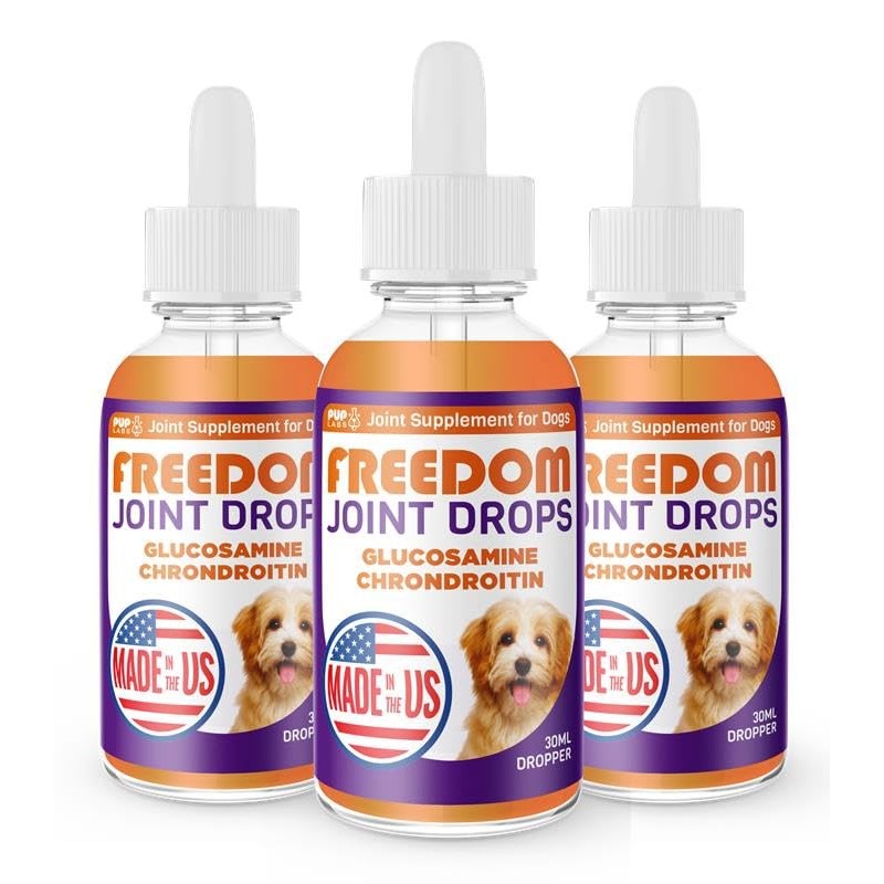 - Vet Reviewed and Approved Dog Joint Supplement - Joint pain and stiffness can prevent your dog from living the happy life they deserve. Freedom Joint Drops support their hip and joint health by aiding flexibility and strength, promoting cartilage development, and fighting swelling so your best friend can resume their active lifestyle!