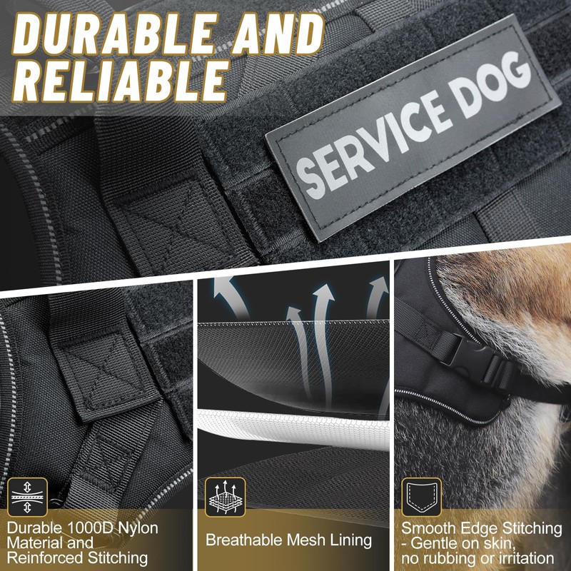 - Durable and Reliable: Made from 1000D nylon fabric, this heavy duty dog harness is tear-resistant and meets military-grade quality standards for K9 units, outdoor activities, hiking, and hunting. The medium and large dog harness reinforced stitching on high-stress areas and metal buckles provide added durability, even during intense movements.