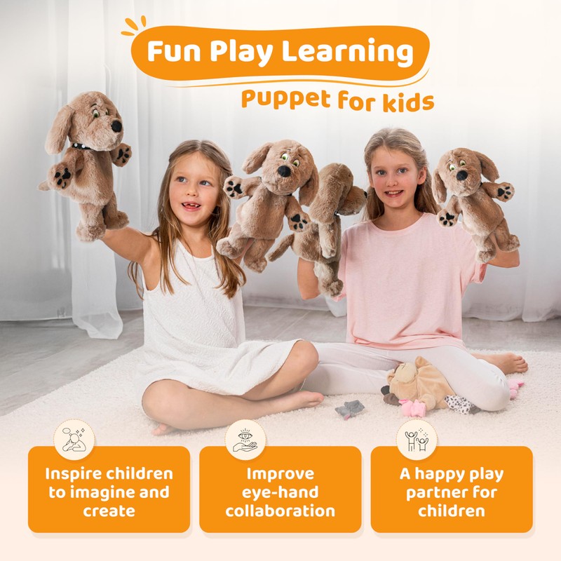 • Adorable Design: This plush puppet captures the lovable charm of a brown dog with expressive features, floppy ears, and a wag-worthy smile.