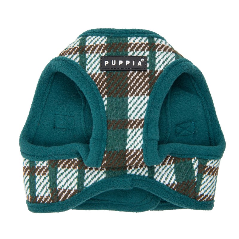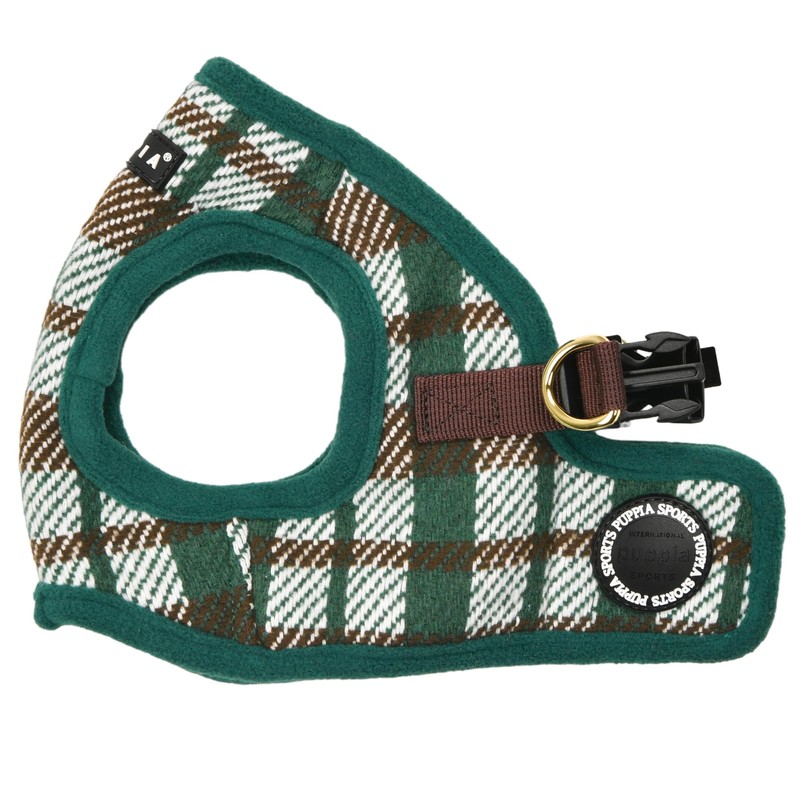 Puppia Festive Vest Dog Harness Step-in Warm Winter Checkered Pattern for Small and Medium Dog, Green, Medium