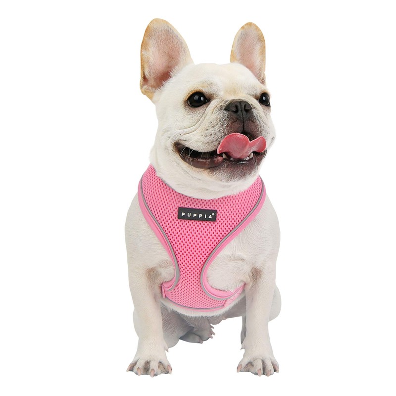 The Soft Harness Pro (over-the-head)features a solid color and solid schemed. It is an newest version of best selling Puppia Soft Harness featuring an adjustable chest belt, reflective straps and Puppia rubber label on the chest. Matching leashes are available and sold separately. Available in RED / PINK / CAMO / NAVY / BLACK in sizes ranging from Small to Extra Large. Please note that because these products were created with small breeds in mind, larger sizes (i.e. Large, Extra-Large, etc.) do not necessarily mean larger breeds. Please refer to image of the size chart. It is very important to measure your dog with a tape measure according to the size chart. As a general rule of thumb, if your dog falls in between sizes, it is usually better to go up a size. Weight figures are for estimates only. Always use actual measurements. Please note that when measuring your dog for clothing, it's very important to have an accurate measurement of your dog's neck and chest girth. IMPORTANT: Please note that when measuring your dog, the measurement for the neck must be taken at the BASE OF THE NECK and chest girth must be taken behind the front legs. Also it is important to take into account the size of the dog's head as well as neck girth and chest girth. Since some dogs have a much larger head than their neck, please be sure that the neck opening is large enough to slide over your dog's head.