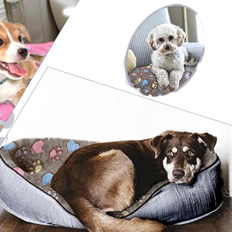 Puppy Blanket Pet Cushion Dog Cat Bed Soft Warm Sleep Animals Mat Paw Print 2pcs