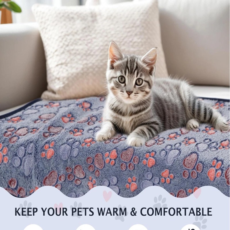 Cute Paw Pattern: Our pet blanket is designed with stylish and lovely paw pattern in 3 different colors for your selection, that is quite suitable for your furry baby using.