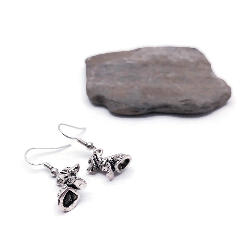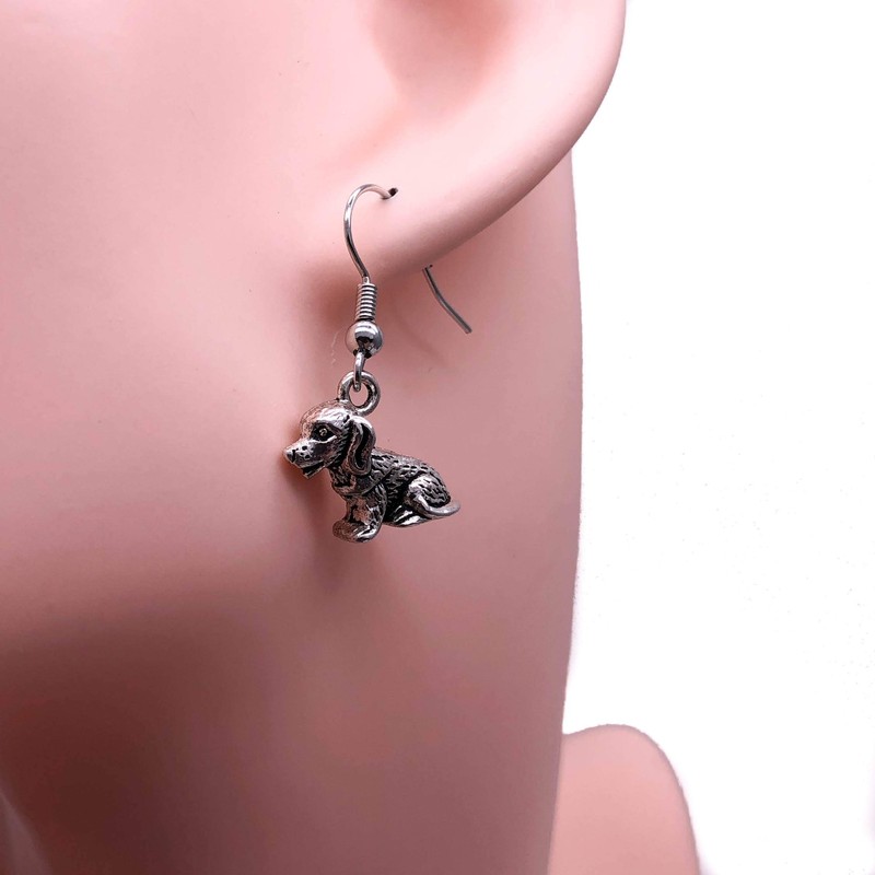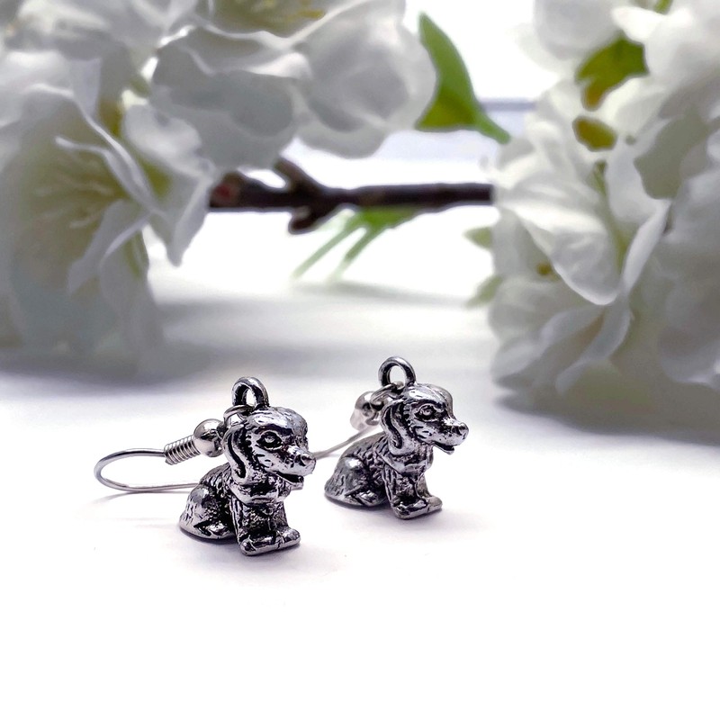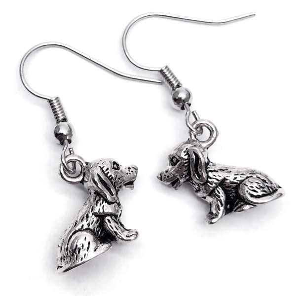 Puppy DOG Charm Earrings - Tibetan Silver 3D Charms on Nickel Free Hooks : 30mm