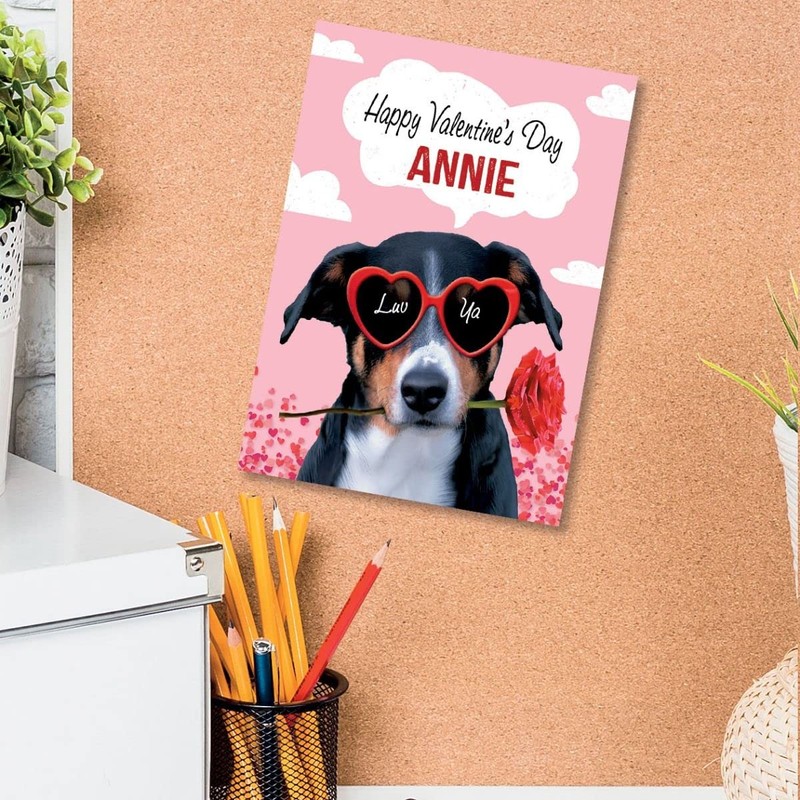 Puppy Love Personalized Valentines Greeting Card - Single Card, Large 5" x 7", Valentines Card with Sentiments Inside, includes White Envelope