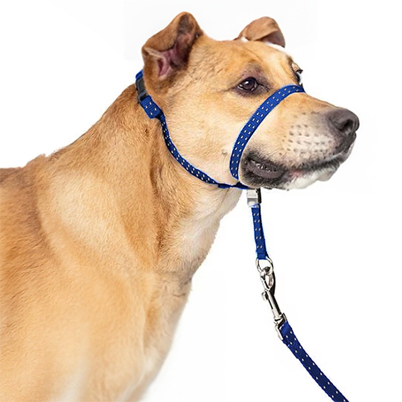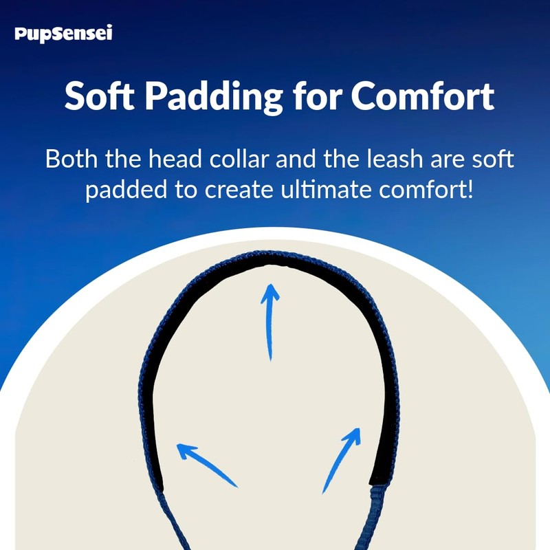 PupSensei Headcollar for Dogs, Extra Soft Padded, Reflective, No Pull Dog Collar, Gentle Leader for Dogs with Durable Nylon Leash, Padded Handle - Navy Blue (Small)