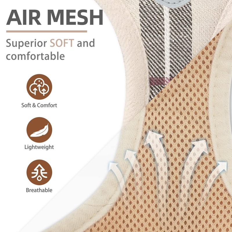 • [REFLECTIVE, PLAID PATTERN] - This Harness has two sides of reflective straps, and the middle logo also is reflective, so if you walk with your dog at night, then both of you will be safer! In addition, the classic plaid pattern is designed by our internal brand team, so it's very different from other normal harnesses. This plaid pattern looks both classic and stylish and is never out of date.