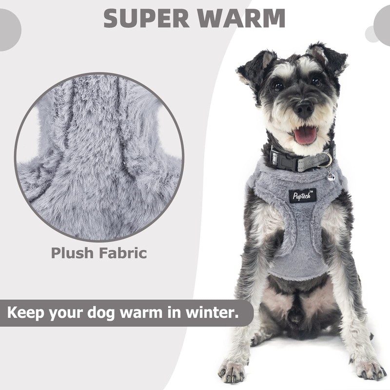 - WARM: The harness is made of thicker plush, which is not only very soft, but also keeps the dog warm to a certain extent. It is suitable for walking and playing outdoors in autumn and winter.
