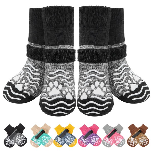 PUPTECK Anti Slip Dog Socks, Shoes with Grippers to Prevent Licking Hardwood Floors Traction, Rubber Boots & Paw Protectors for Small Medium Large Dogs Cold/Hot Pavement, Senior Dogs Booties Grey