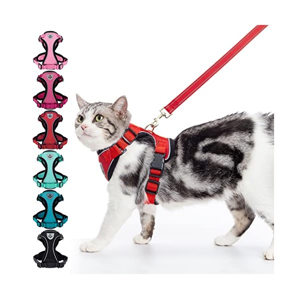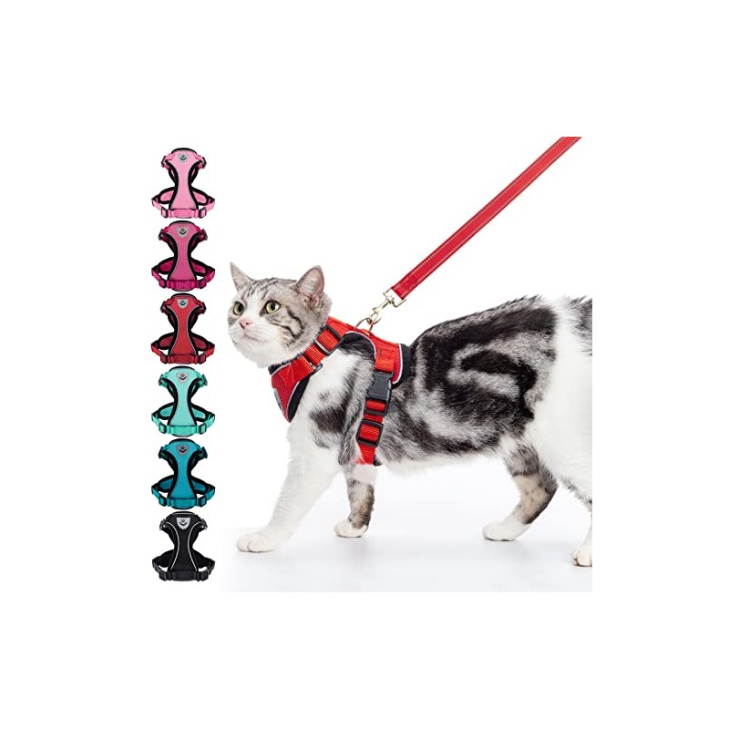 PUPTECK Cat Harness and Leash Set- Adjustable Vest Escape Proof Harness for Kitten Small Medium Cats, Retractable Breathable Soft Mesh for Outside with Reflective Strips