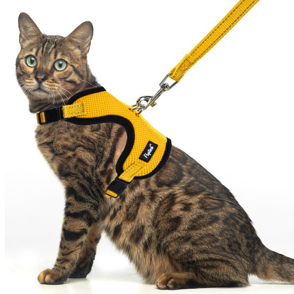 PUPTECK Cat Harness and Leash Set Escape Proof, Reflective Adjustable Soft Mesh Kitten Vest Harness for Walking Travel, Yellow, S