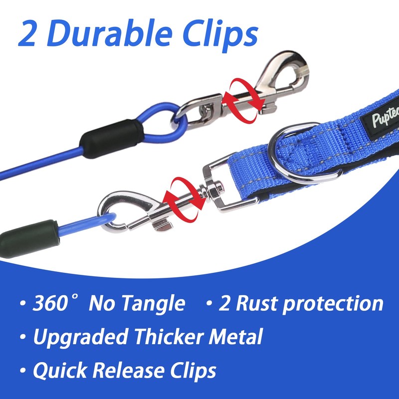 PUPTECK Chew Proof Dog Leash for Small Medium Large Dogs, Heavy Duty Dog Leashes with Padded Handle, Steel Cable Lead with Detachable Short Leash for Training Walking, Blue