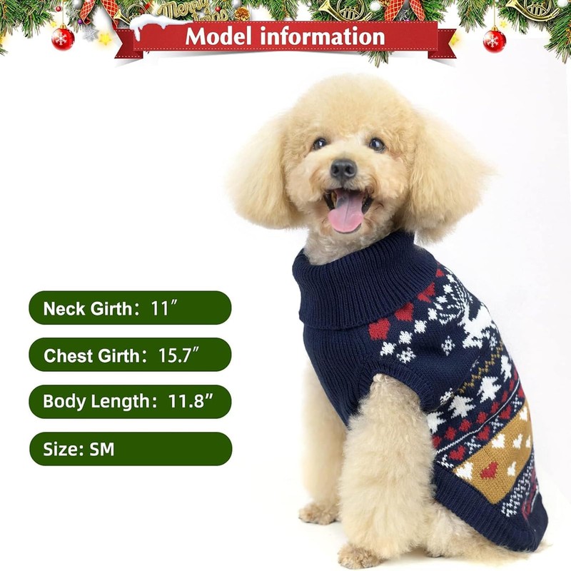 PUPTECK Christmas Dog Jumpers - Soft Warm Outfit Dog Sweaters Cold Weather Knitted Clothes for Small Medium Large Dogs Winter Wearing Costume, Navy XS
