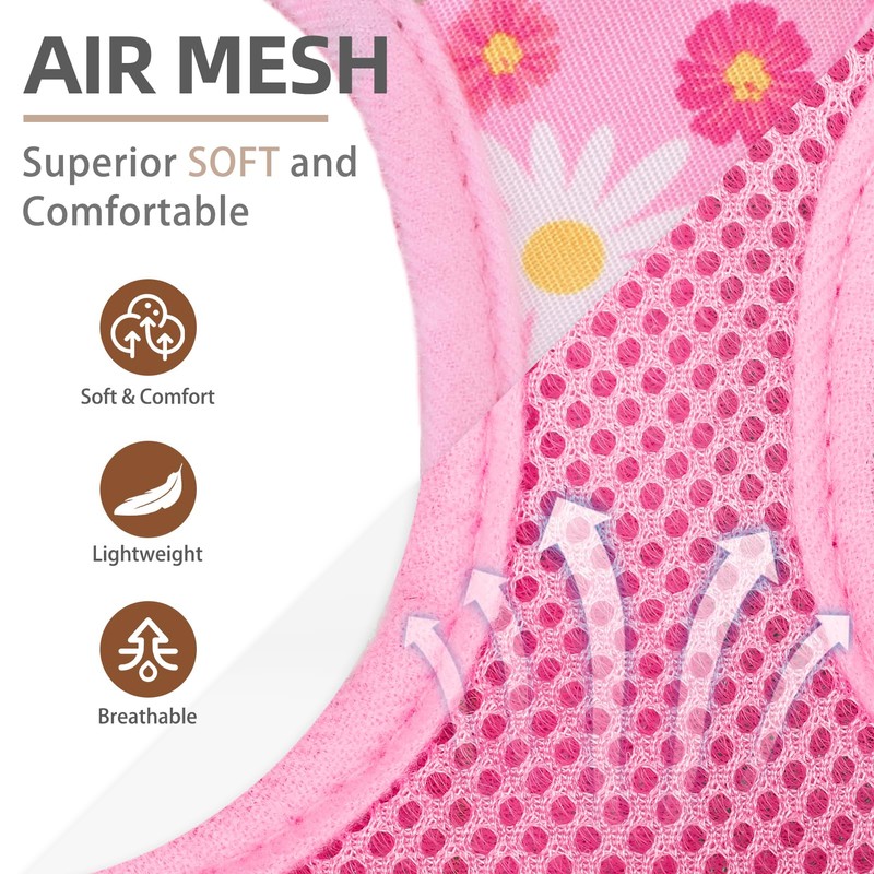 PUPTECK Dog Harness and Leash Set for Small Medium Dogs No Pull Step-in Soft Mesh Puppy Cat Vest Harnesses Reflective at Night, Pink Floral, S