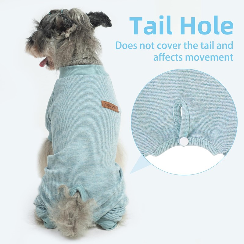 - THOUGHT DESIGN: The puppy pajamas are designed with a pullover, easy to put on and take off; the cuffs are elastic, not too tight; there is an opening on the belly, convenient for the dog to go to the toilet; the back is designed with a hole to reveal the dog's tail. Allow your furry child to play and move freely