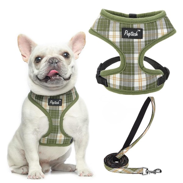 PUPTECK Soft Mesh Dog Harness and Leash Set Pet Puppy Cat Comfort Padded Vest No Pull Harnesses, Olive Green, L