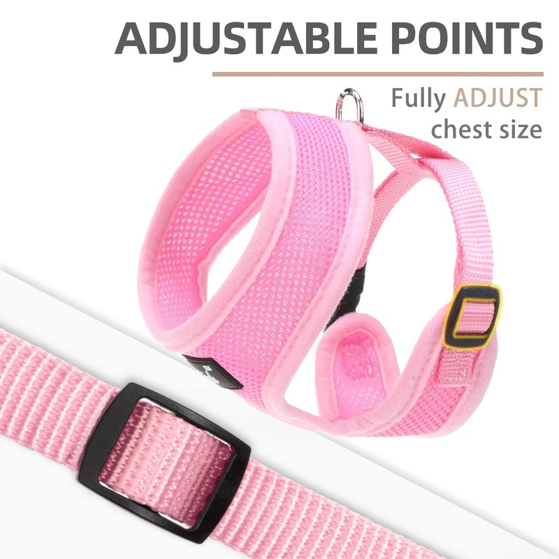PUPTECK Soft Mesh Dog Harness and Leash Set Pet Puppy Cat Comfort Padded Vest No Pull Harnesses, Solid Pink, M