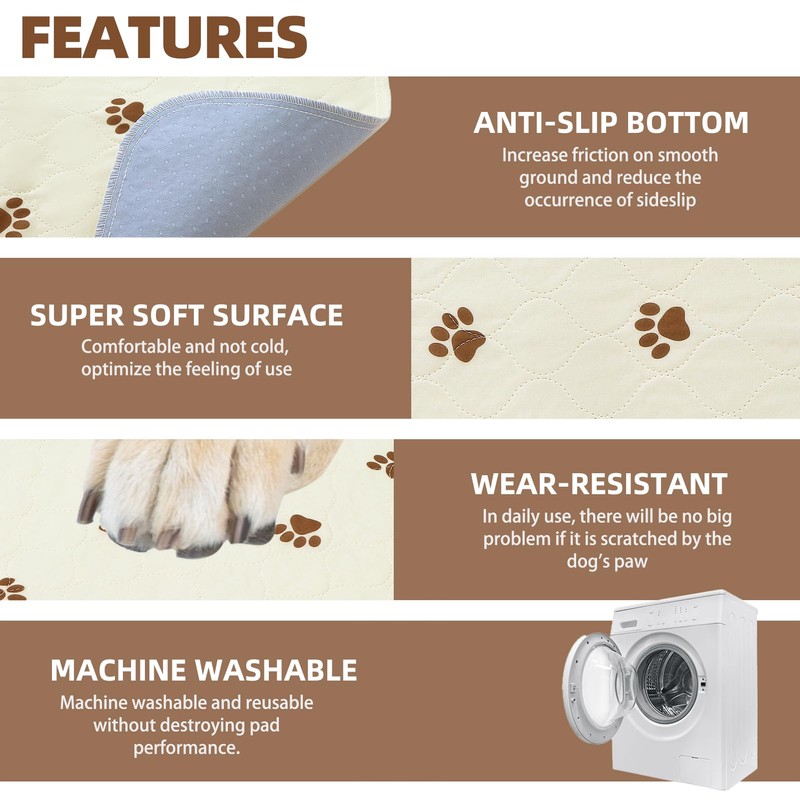 PUPTECK Washable Pee Pads for Dogs - Waterproof Reusable Puppy Potty Training Pads Whelping Mat - Fast Absorption Non-Slip Pet Food Feeding Mat (Beige, 36x72 Inch (Pack of 2))