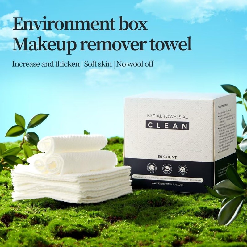 PUPUPE Disposable Face Towels, Viscose Biodegradable Large Dry Wipes, Super Soft & Thick Face Clean Towels, Daily Facial Tissues for Sensitive Skin, Makeup Removing,Facial Cleansing,Nursing,Travel (50 Count)