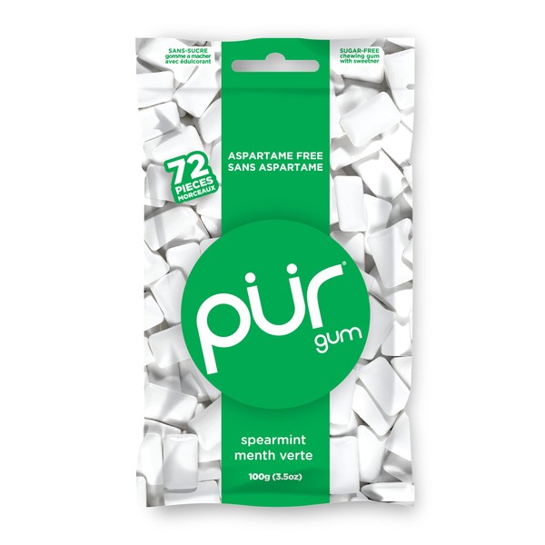 PUR 100% Xylitol Chewing Gum, Spearmint, Sugar + Aspartame Free, Vegan + Non Gmo, 72 Count
