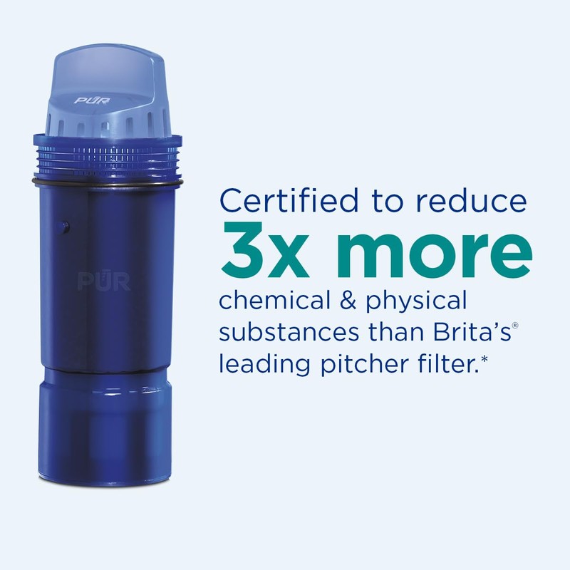 - LEAD REDUCTION FILTER – PUR PLUS water filtration pitcher filters are WQA certified to reduce lead & other harmful contaminants that could be in your water. Filter PPF951K is certified to reduce 3X more contaminants than Brita’s leading pitcher filter.