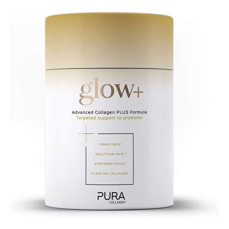 Pura Collagen Powdered Supplement (Glow+) – 10,000mg Hydrolysed Collagen Peptides with Hyaluronic Acid, Vitamins & Minerals – 284g (28 Servings) for Radiant Skin, Hair & Nails