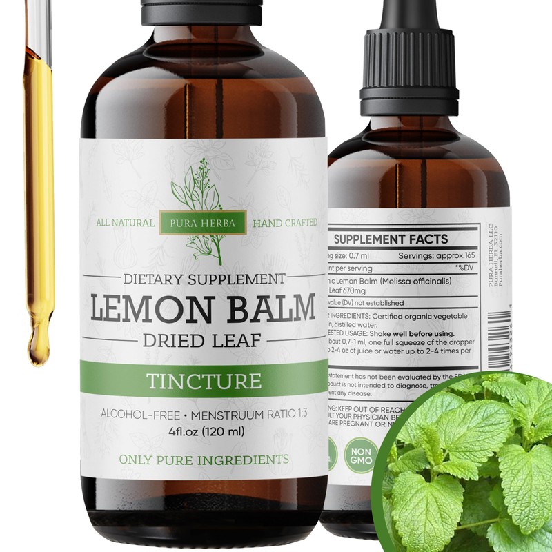 Pura Herba Lemon Balm Liquid Tincture – Alcohol-Free, Vegan – Organic Lemon Balm Extract – Made in USA – 4 Fl Oz
