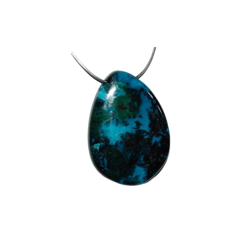 PURAJA Gemstone pendant made of real natural stone, crystal necklace with drop pendant including elegant cord band, premium healing stone/lucky stone made of high-quality minerals, chrysocolla,