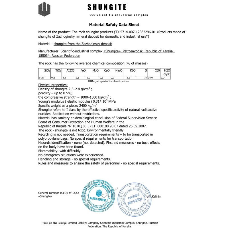 - Shungite from Karelia: Our shungite pyramids are extracted exclusively from the Zazhoginskij mine (Karelia, Russia). This is an important quality feature. Pay attention to this!