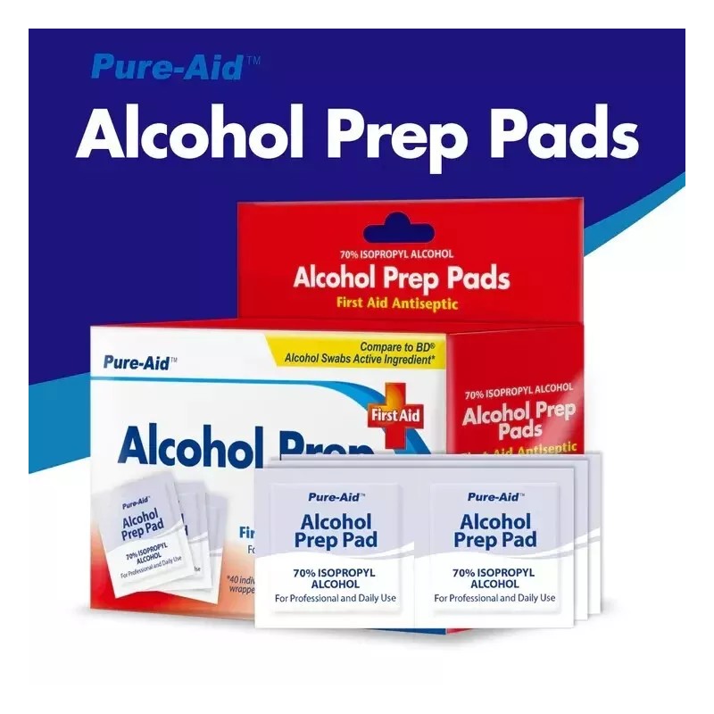Stay clean and protected with our 6-Pack of 70% Alcohol Prep Pads! Each pack contains 40 individually sealed alcohol wipes from Pure-Aid, making them a convenient and effective solution for sanitizing and disinfecting on the go. Perfect for personal use, healthcare settings, or any situation where cleanliness is paramount.