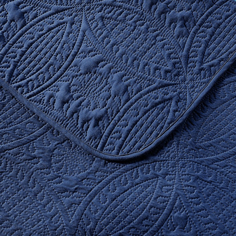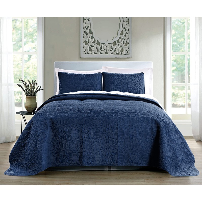 - Reversible navy geometric quilted pattern adds a stylish layer to complement any bedroom decor