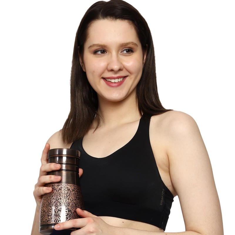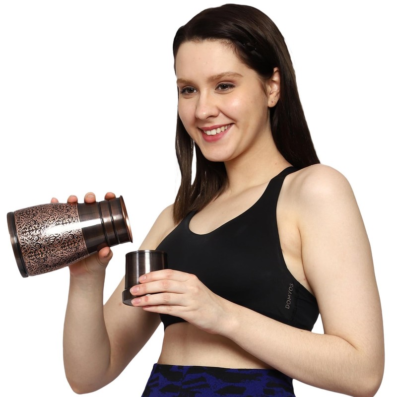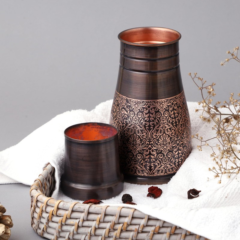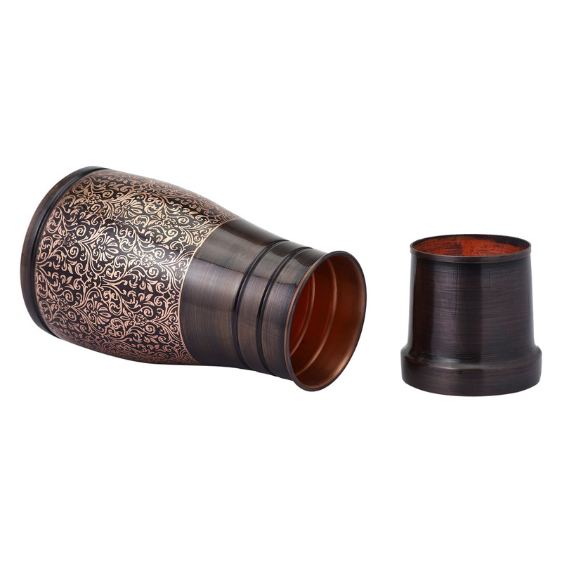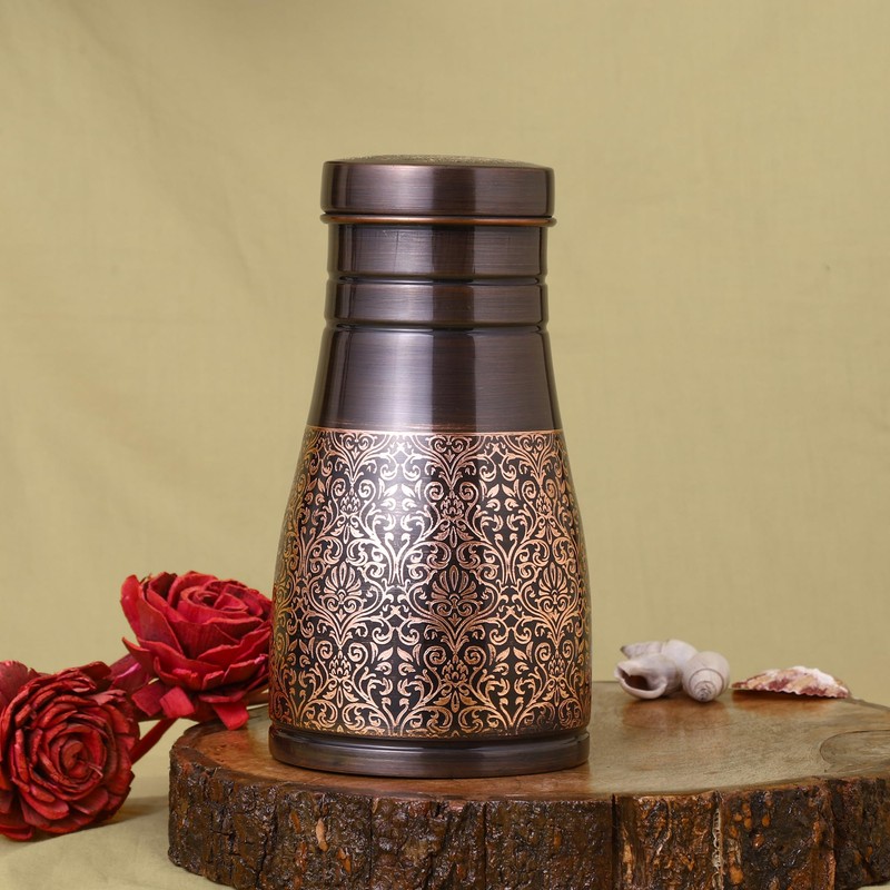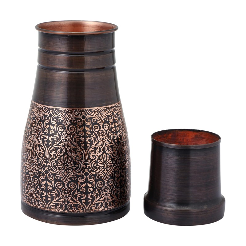 Pure Copper Bedside Carafe - 1 Liter Capacity, Designed for Ayurveda Health Benefits - Etching Pattern