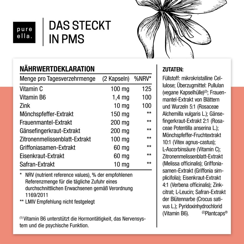 Pure Ella Vitalstoffkomplex für Frauen - 180 Kapseln - Enthält Mönchspfeffer, Frauenmantel, Safran, Vitamin C, B6 & Zink - Für die Zeit vor der Menstruation - Natürlich, hormonfrei, vegan