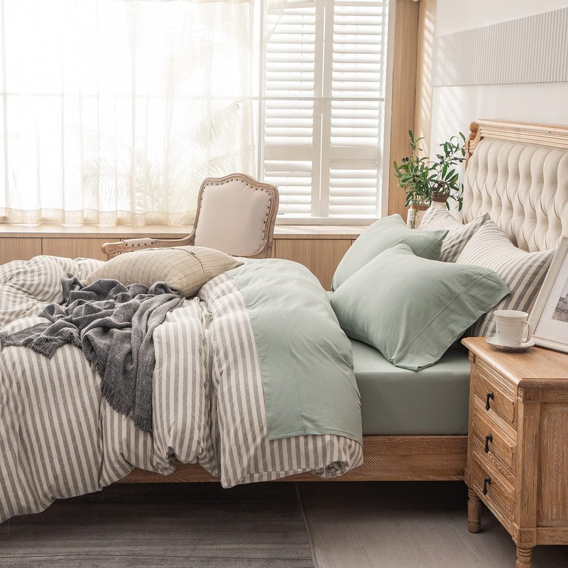 - Heather jersey bed sheet set (4pc) includes: a flat top sheet, a fitted bottom sheet, and 2 pillowcases. A classic simple yet chic home bedding sets in solid sage green, elegant color brings a fresh look to your bedroom.