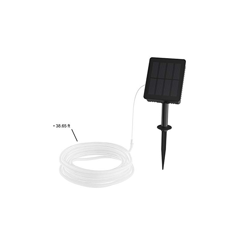 Pure Garden 50-LG1009 Outdoor Rope Solar Powered Cable String 100 LED Lights with 8 Modes for Patio, Backyard Garden, Events (Warm White)