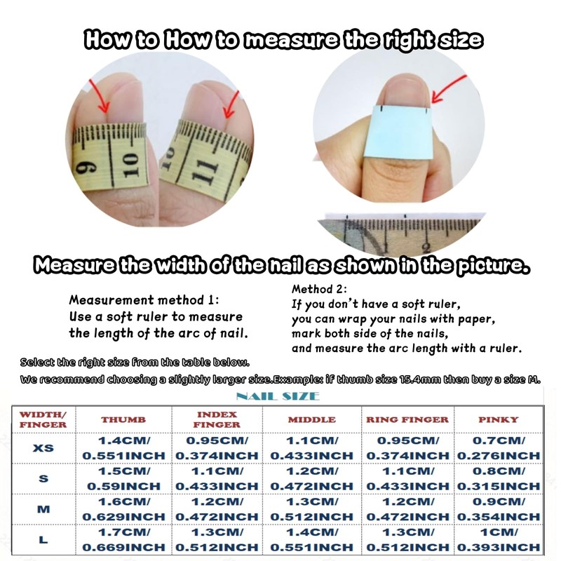- Press on False Nails provide 10pcs in BOX, Fits fingers of all sizes, 2 sizes of Jelly Adhesive Tabs (normal+oversize)