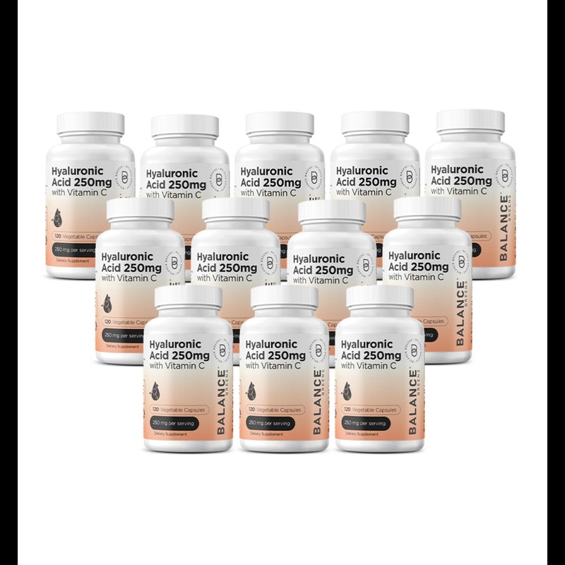 Pure Hyaluronic Acid Supplement 250mg with Vitamin C 50mg, 120 Vegan Capsules - Skin Hydration for Natural Glow, Hair, Nails, Bone & Joint Health Formula 120 Count (Pack of 12)
