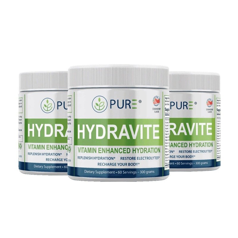 PURE Hydravite Vitamin Enhanced Hydration (300g, 60 servings) Strawberry Flavor!