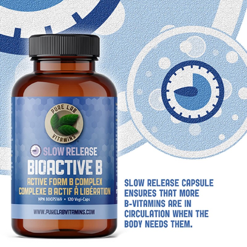 Pure Lab Vitamin | Slow Release Bioactive B Complex | 120 Capsules | Vitamin B-Complex Supplements | Metabolic Support Immune System | Vitamin B Pressure Complex | B Complex Vitamins for Men and Women