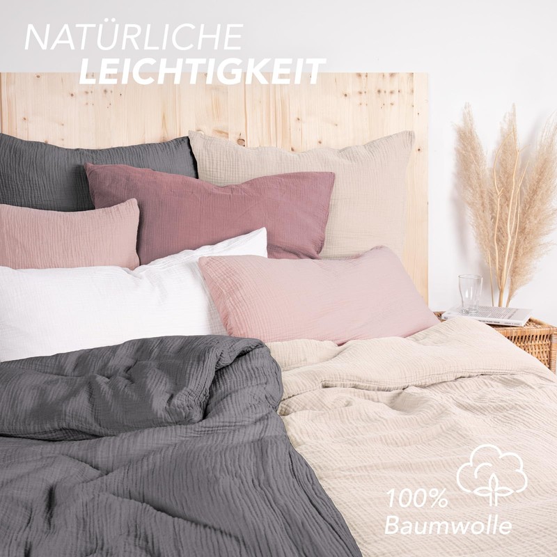 - 1, 2, 3 done – putting on and taking off the bedding is child's play with our cotton muslin bed linen. All duvet covers and pillows in our Pure Label muslin series are non-iron and easy to clean thanks to the textured surface.