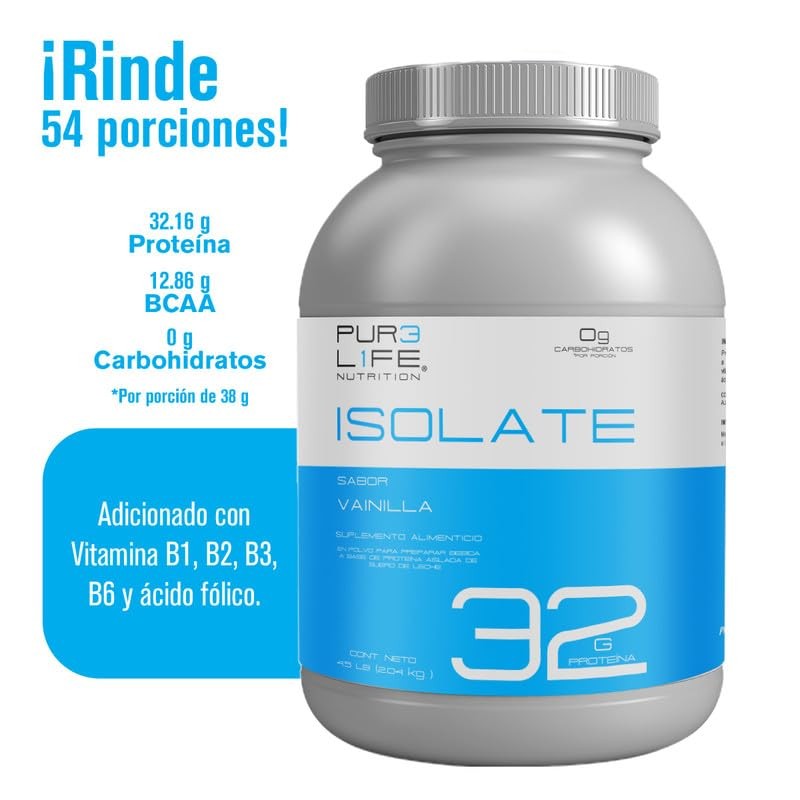 🌟 ⭐ PURE LIFE Proteína Isolate 100% Aislada de Suero de Leche Sabor Vainilla 0g de Carb Sin Azúcar Añadida En Polvo Pre Post e Intra Entrenamiento 2.04 kg (54 porciones, 32 g de proteína por porción) ⭐ 🌟