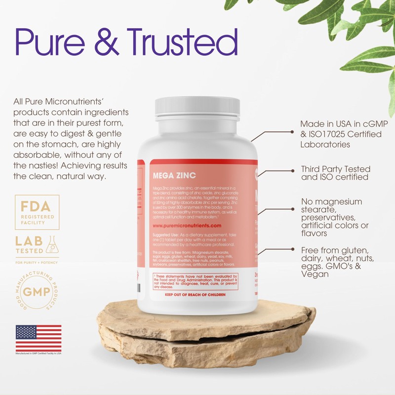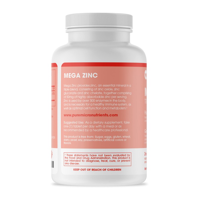 Pure Micronutrients Mega Zinc Supplement, 50mg, 3-in-1 Zinc Complex, 100 Tablets - Pure Micronutrients