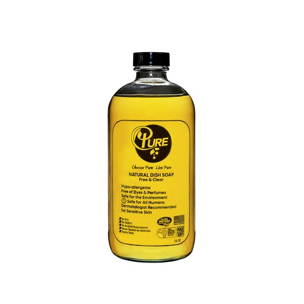 Pure Natural Dish Soap, Free & Clear, 16 oz, Hypo-allergenic, Dye & Perfume Free