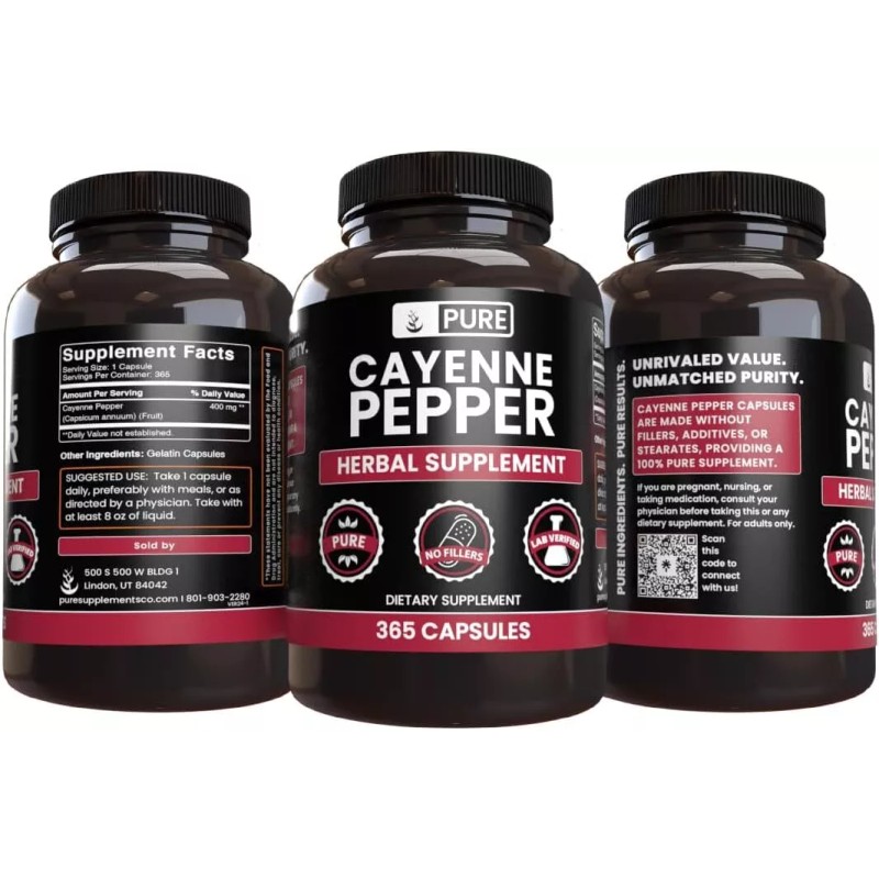 PURE ORIGINAL INGREDIENTS Cayenne Pepper (365 Capsules) No Magnesium or Rice