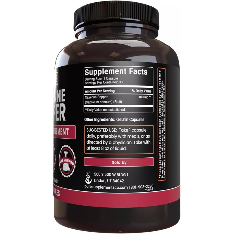 PURE ORIGINAL INGREDIENTS Cayenne Pepper (365 Capsules) No Magnesium or Rice