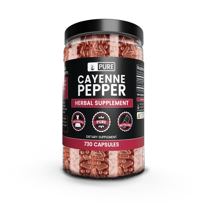 • PURE Cayenne Pepper Capsules are filled with a single ingredient, providing a pure undiluted supplement