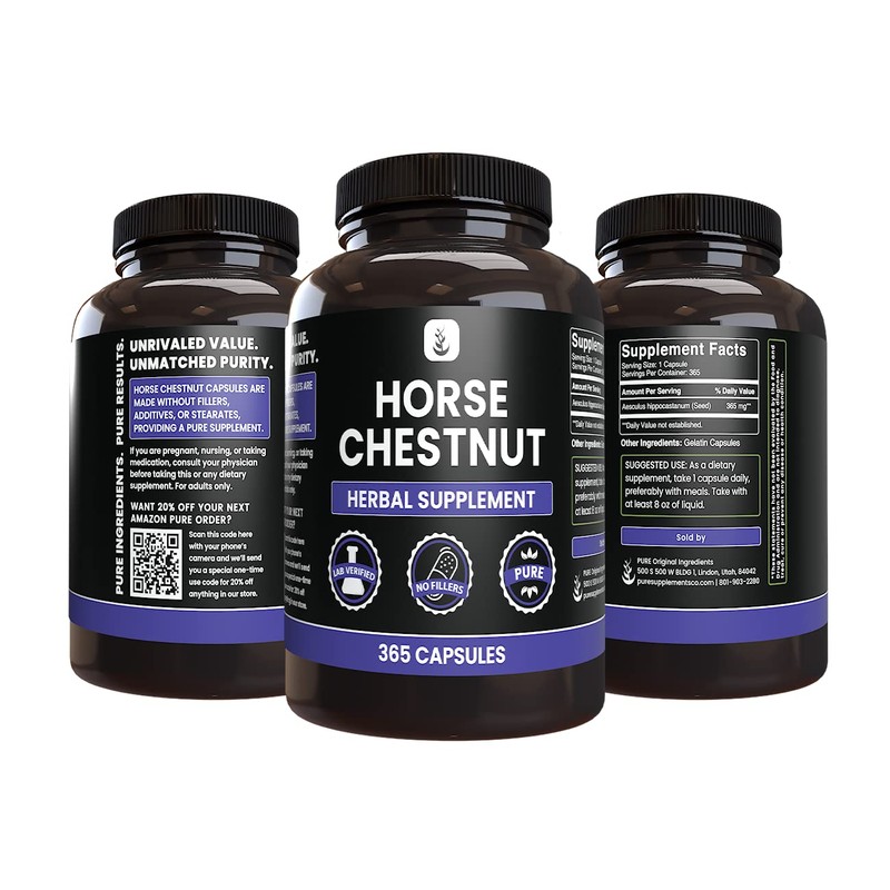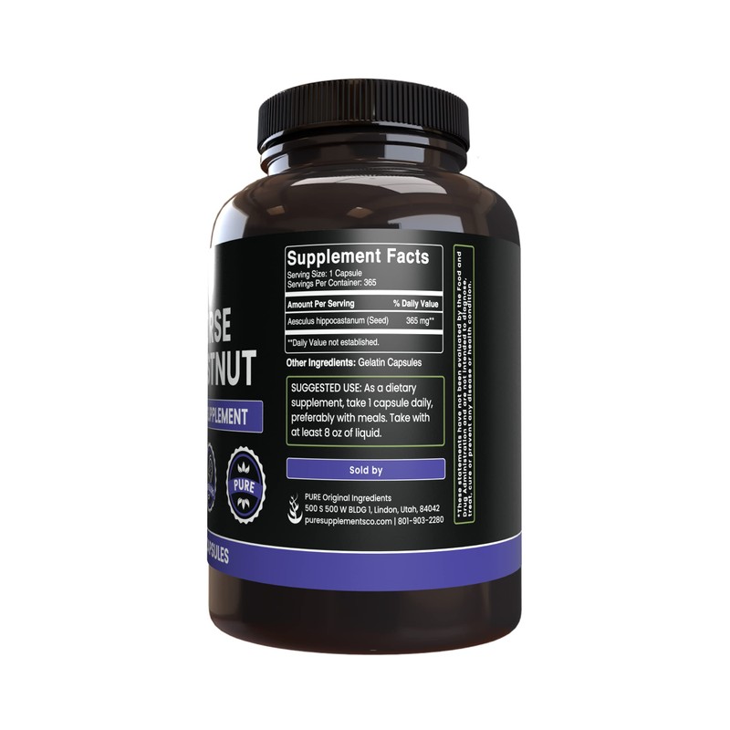 PURE ORIGINAL INGREDIENTS Horse Chestnut (365 Capsule), No Magnesium Or Rice Fillers, Always Pure, Lab Verified