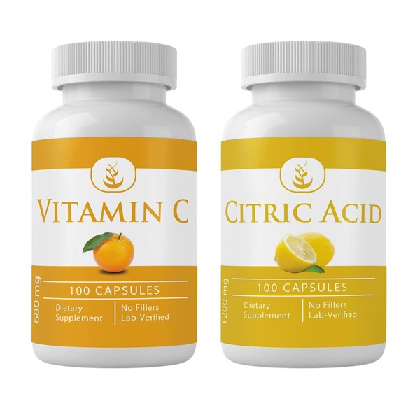 PURE ORIGINAL INGREDIENTS PURE ORIGINAL INGREDIENTS Vitamin C and Citric Acid Capsules Bundle, 100 Capsules Each, Always Pure, No Additives or Fillers