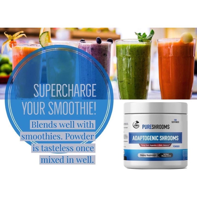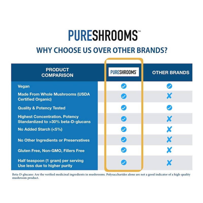 Pure Shrooms - Adaptogenic Shrooms Powder - 100 Servings - Blend of Organic Lion’s Mane, Reishi, & Cordyceps Mushrooms. Cognition, Immunity and Energy. Beta-D-Glucan 33%. No Added Starch. (100 grams)