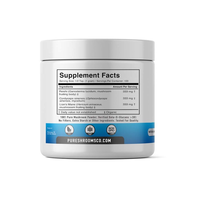 - 100% PURE LION'S MANE, REISHI & CORDYCEPS MUSHROOM BLEND - We combined three powerful mushroom extracts. Mixes easily with coffee, smoothies or food recipes. Half teaspoon (1 gram) per serving.